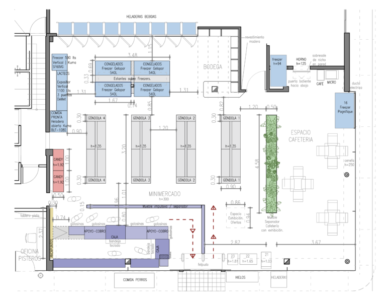 Para ello proponemos una nueva distribución que implica cambios en las góndolas, freezers y mobiliario actual, contemplando el flujo del usuario.