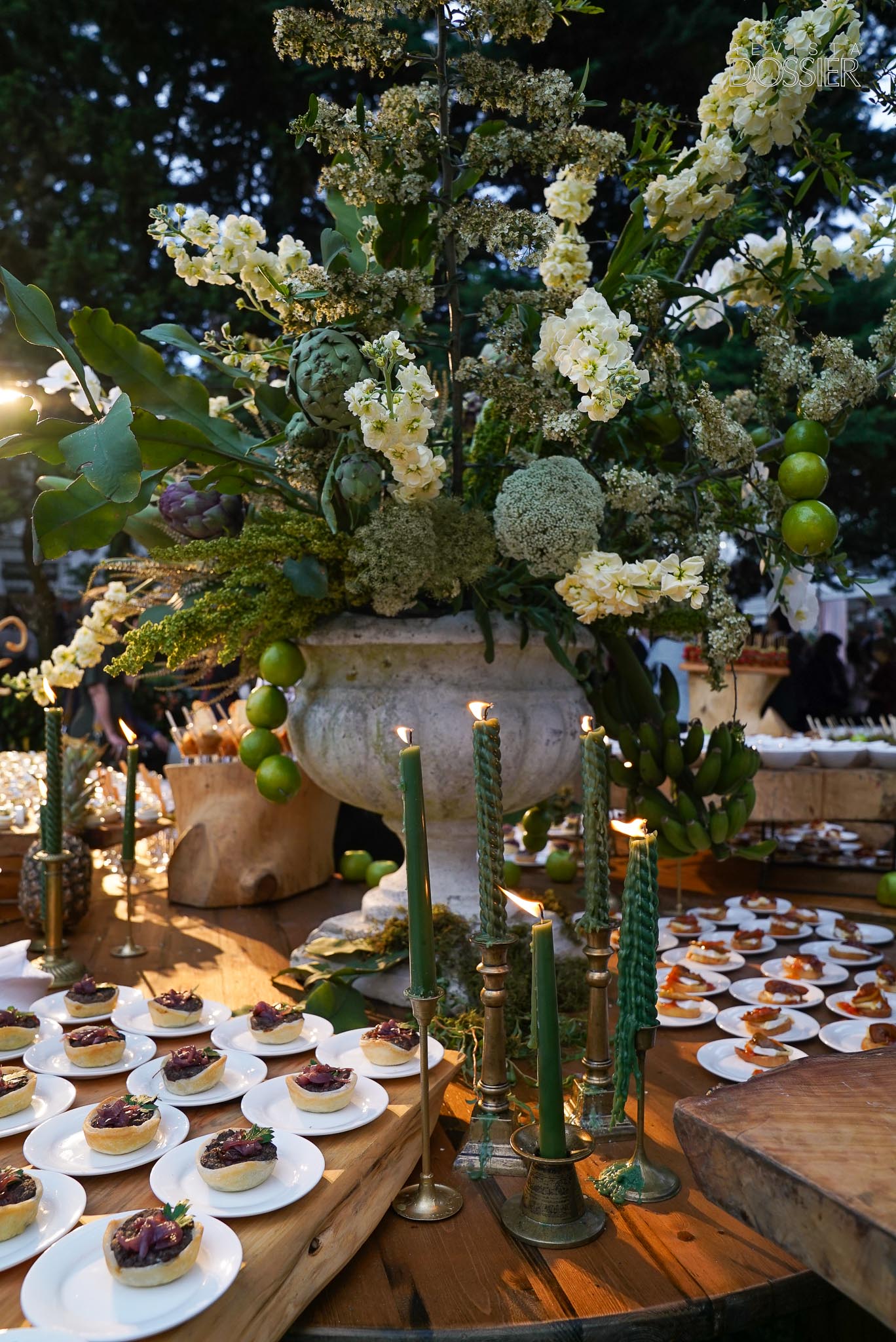 Buscamos una ambientación elegante, con materiales y elementos de calidad que realzaran las características de la Residencia y que acompañaran la gastronomía española que se sirvió durante la fiesta.