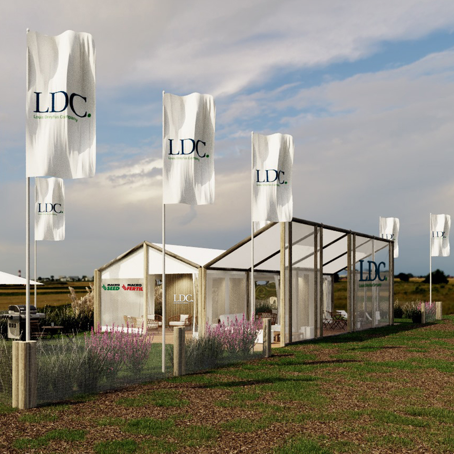 Un cerco de gramíneas y flores se extendía por todo el perímetro, aportando los colores de la naturaleza y generando un verdadero jardín agreste.